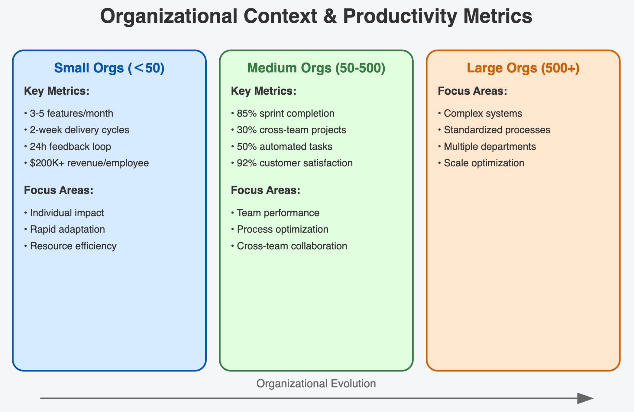 Team dynamics play a crucial role in metric selection, as measurement approaches must adapt to different organizational scales. Small teams benefit from focused individual metrics, while larger organizations require more sophisticated systems that can effectively measure performance across multiple levels and departments.